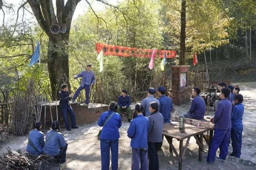 当他喊着“我们要为建设农村奋斗”时,活脱脱像极了中年人在团建活动上被迫喊口号。